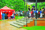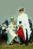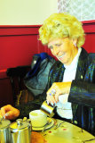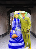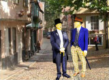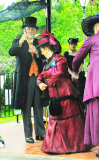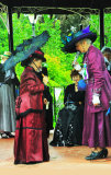None of us are so clever that we are unable to learn from others. In any event, designing and making costumes is tiring work, so June decided to give herself a day off and go to Wales' premier Victorian Festival (see links). None of the costumes in this section were designed or made by June, but the festival is one of several opportunities to see what other enthusiasts are doing. I hope that you will excuse the photography, but it was tipping down with rain. I am grateful to those participants who agreed to be photographed for this website. If you look carefully, you may catch June enjoying a well earned cup of tea! (NB All photographic subjects were shot in Llandrindod Wells, but some backgrounds have been digitally altered for effect).